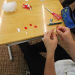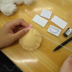 フェルト生地でアンパンマンのキーホルダーを作りました。赤ちゃん人形を用いたお世話体験や絵本の読み聞かせなど、保育に関するさまざまな動きを体験しました。
