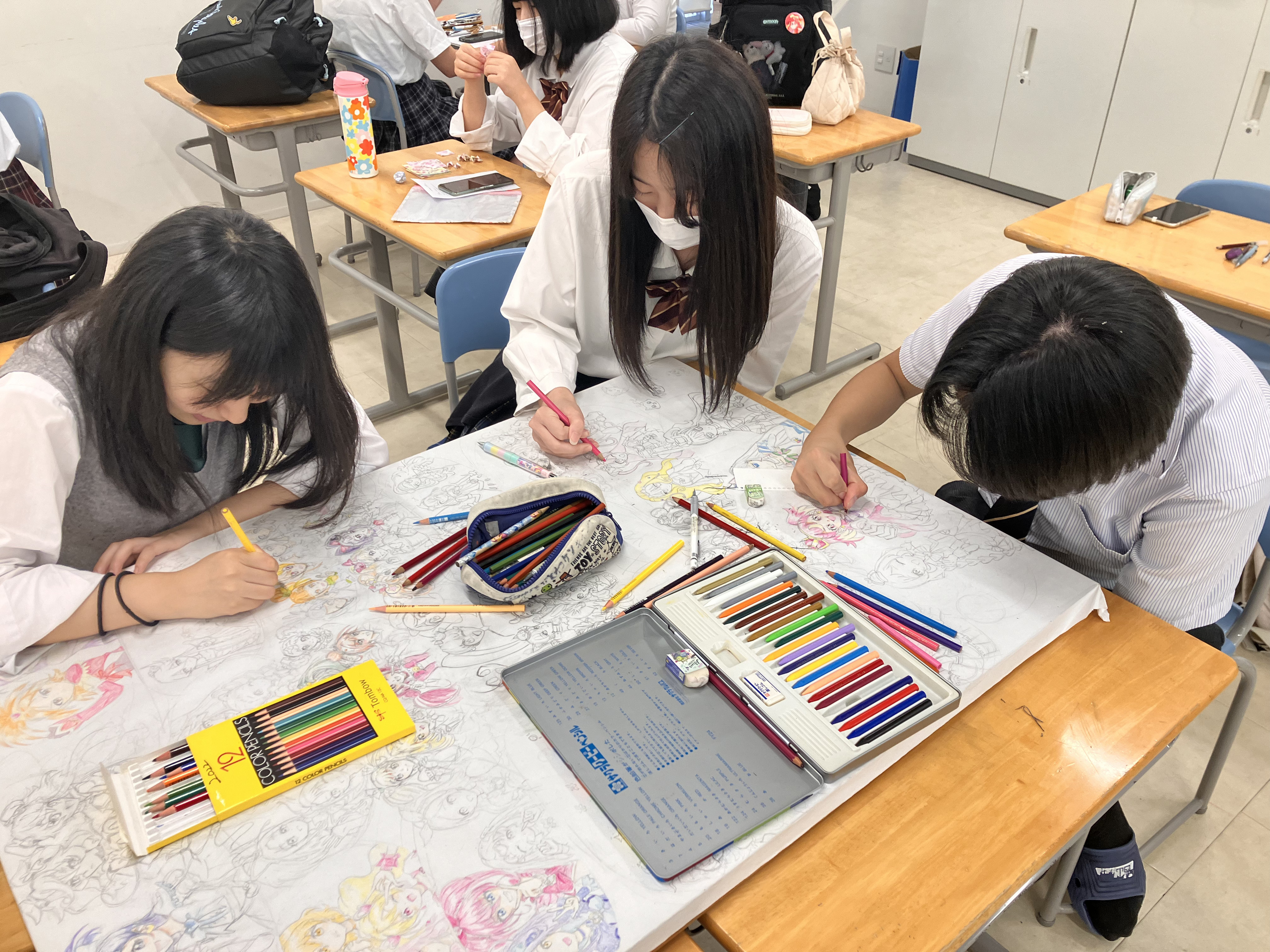 こちらは大作に挑んでいます。チームで協力して着彩を行います。